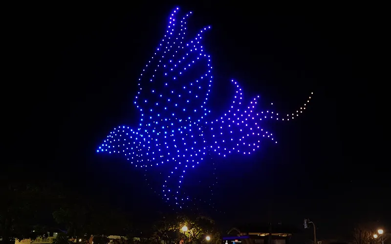 高輝度LEDを搭載したドローンを夜空に放ち、