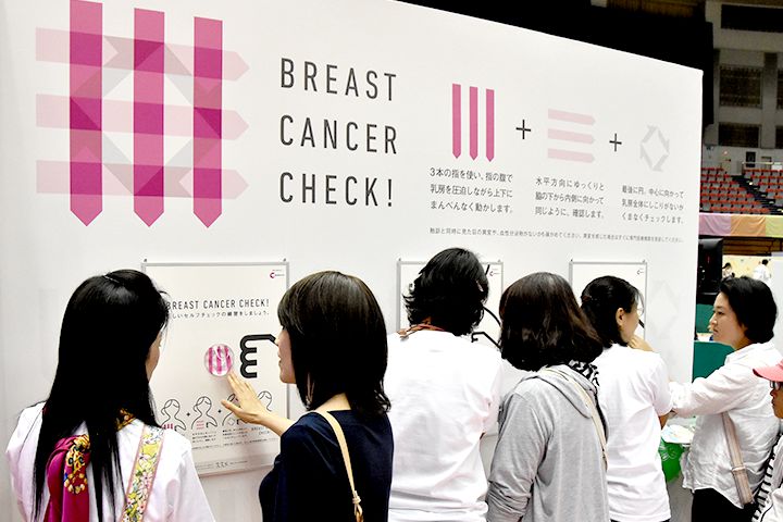 乳がんをいち早く見つける方法を会場の皆さんと一緒に考えました。